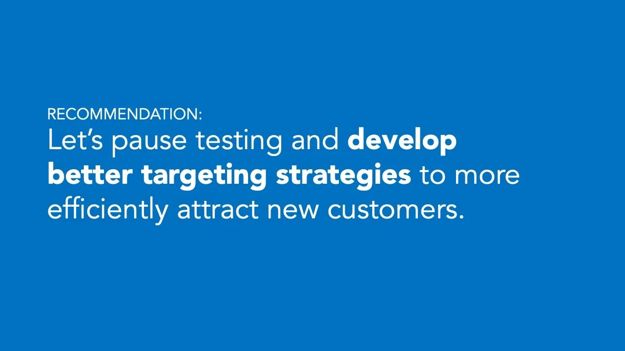 “Pausing tests for now and developing better targeting strategies to more efficiently attract new customers.