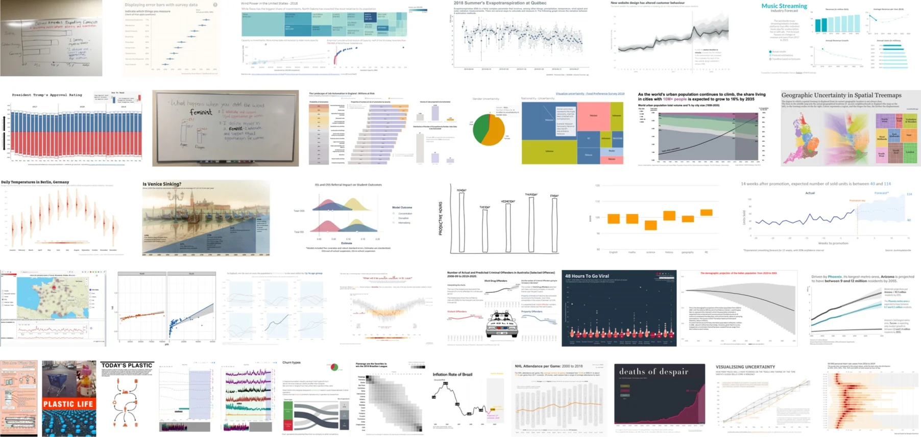 People like things that are concrete and certain: and so, when we plot our data in a solid point, line, or bar on a graph, it’s easy for people to consider it “truth.” There are times when that is appropriate, and times when it definitely isn’t. Many times, there is uncertainty that we ought to convey in order to provide a more complete picture to the audience. This month’s challenge requires you to identify a scenario and data where there is inherent uncertainty, and design a visualization that makes that clear.